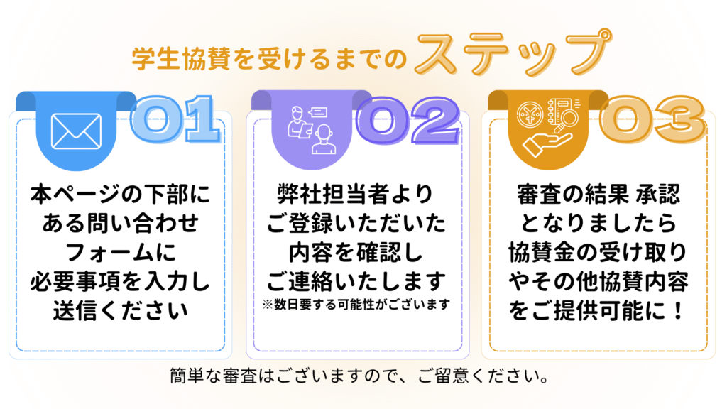 学生協賛に興味がある方は下記よりお問い合わせください
